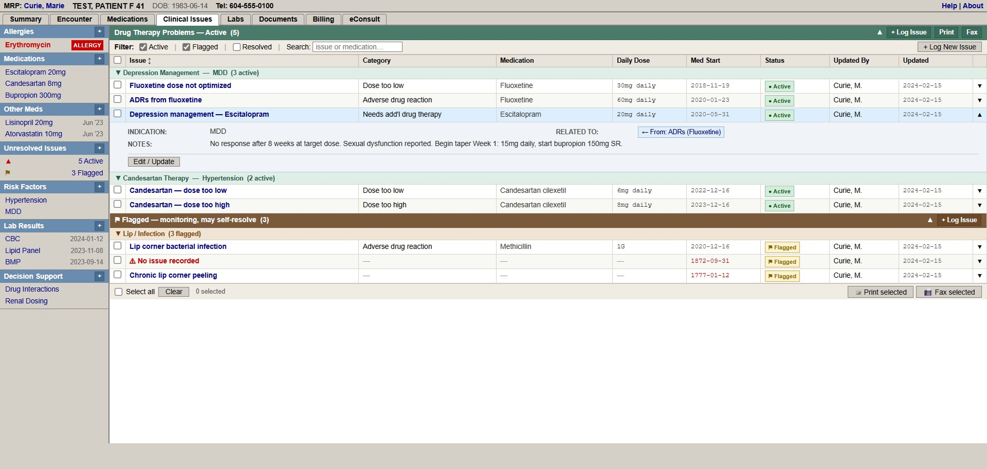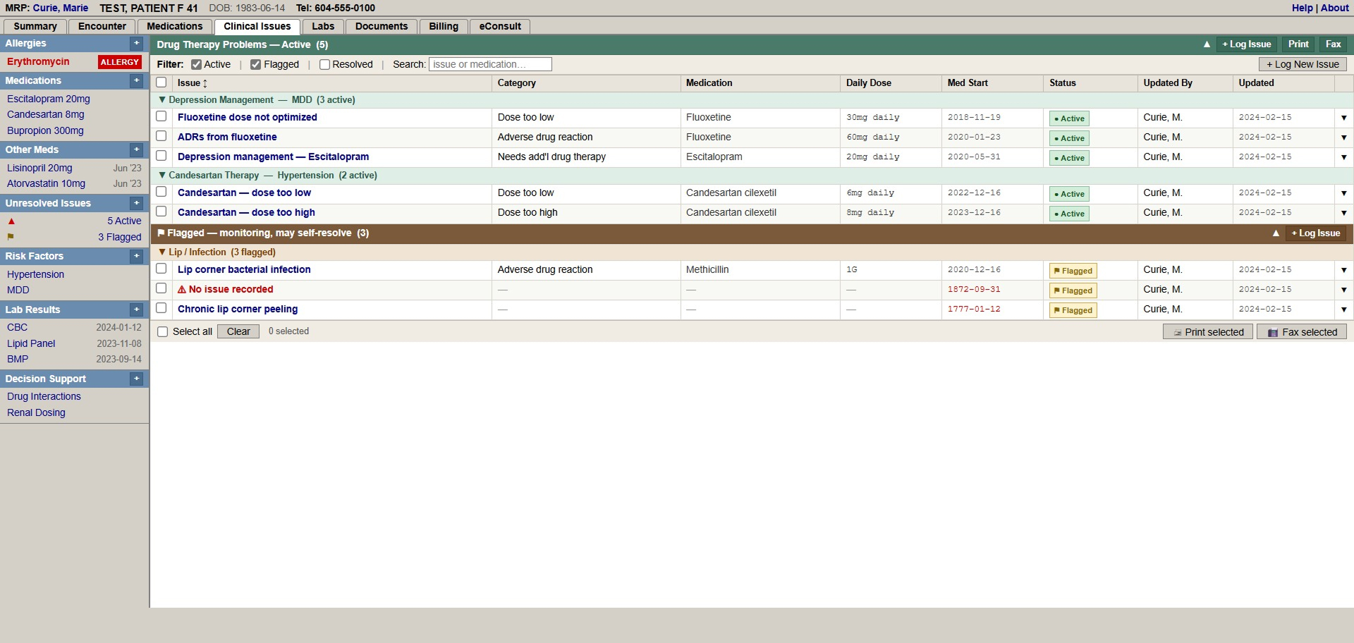 The Issue Tracker is currently used internally at the UBC Pharmacists Clinic. This work was completed in a live clinic setting, with existing tools and workflows. The OSCAR EMR imposed technical constraints that shaped what was possible. The final design and research is part of broader, ongoing efforts to expand pharmacist-focused functionality within OSCAR EMR, and continues to inform future development.