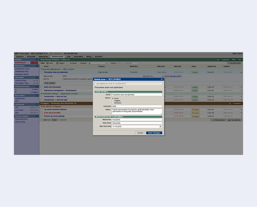 Designing a tool for pharmacists to track, manage, and resolve patient care issues.
