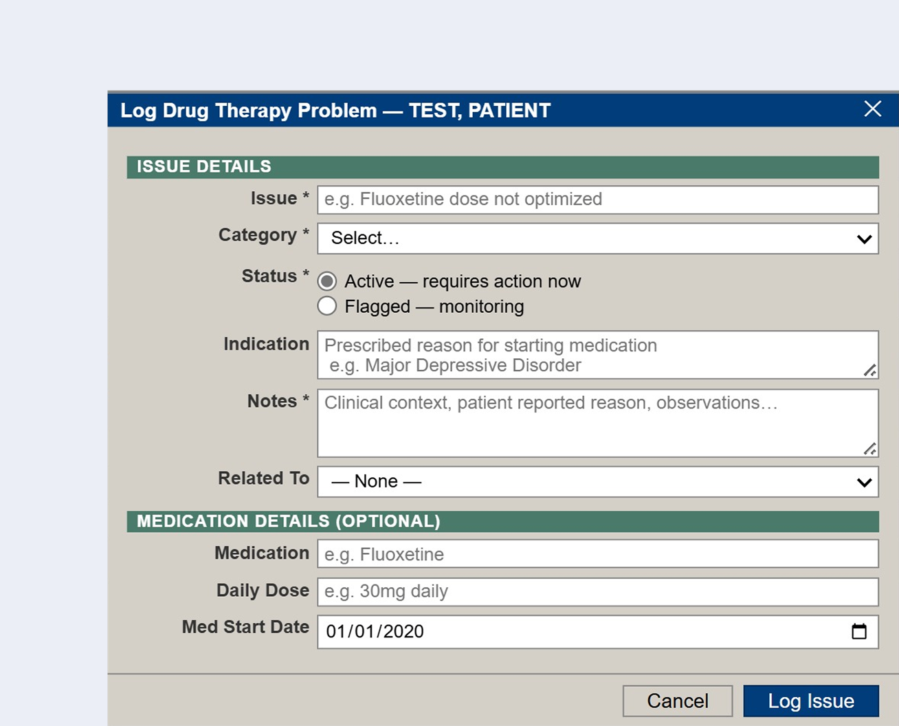 - Reflect clinical reality. The tracker must accommodate the variability and nuance of real-world DTPs, rather than forcing clinicians into rigid categories.