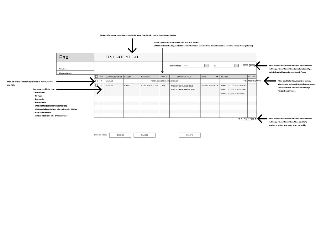 Interface Redesign: ideated and refined solutions in Figma; simplified cluttered layouts, improved visual hierarchy, and proposed clearer navigation for key clinical tasks.