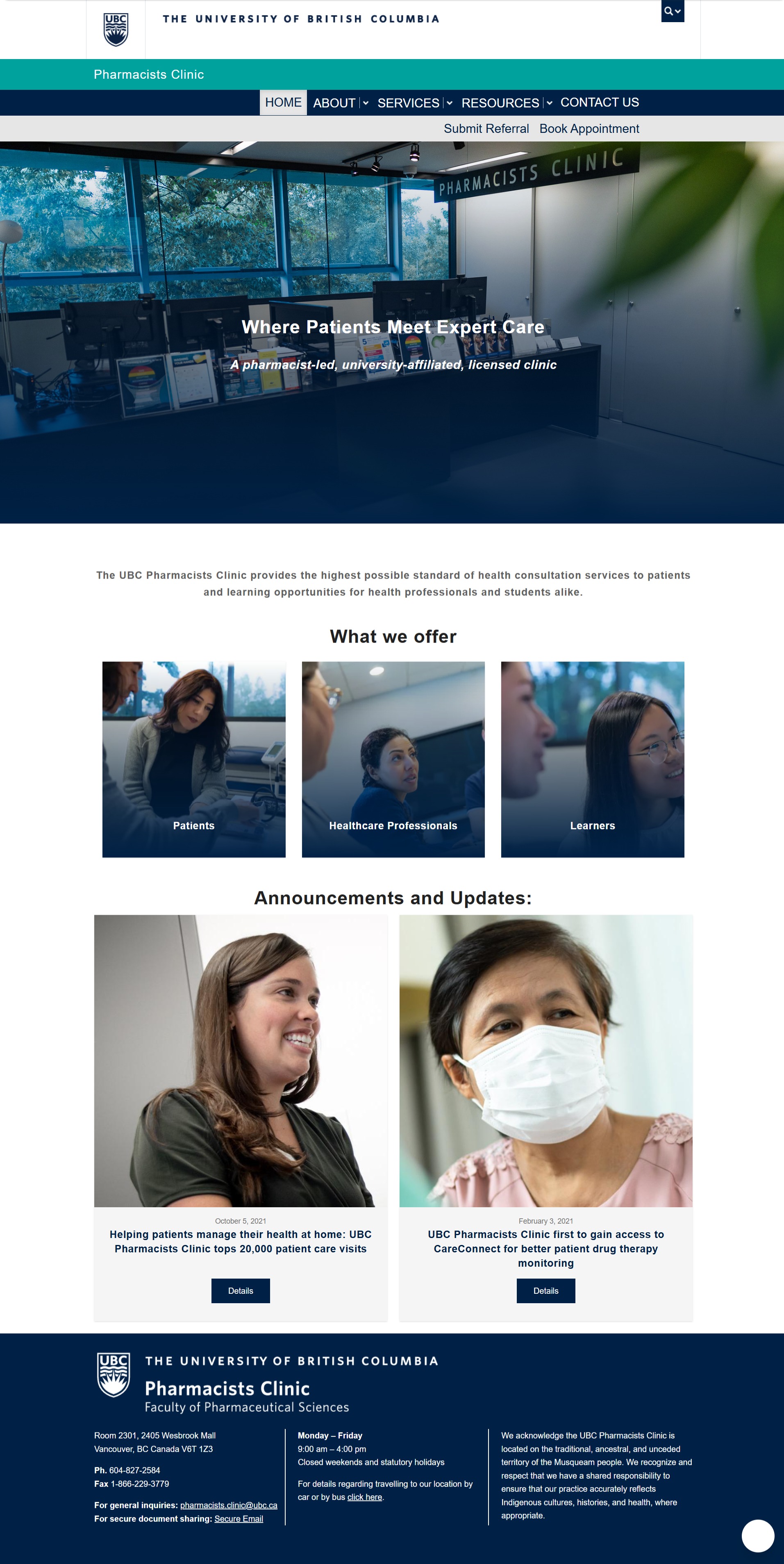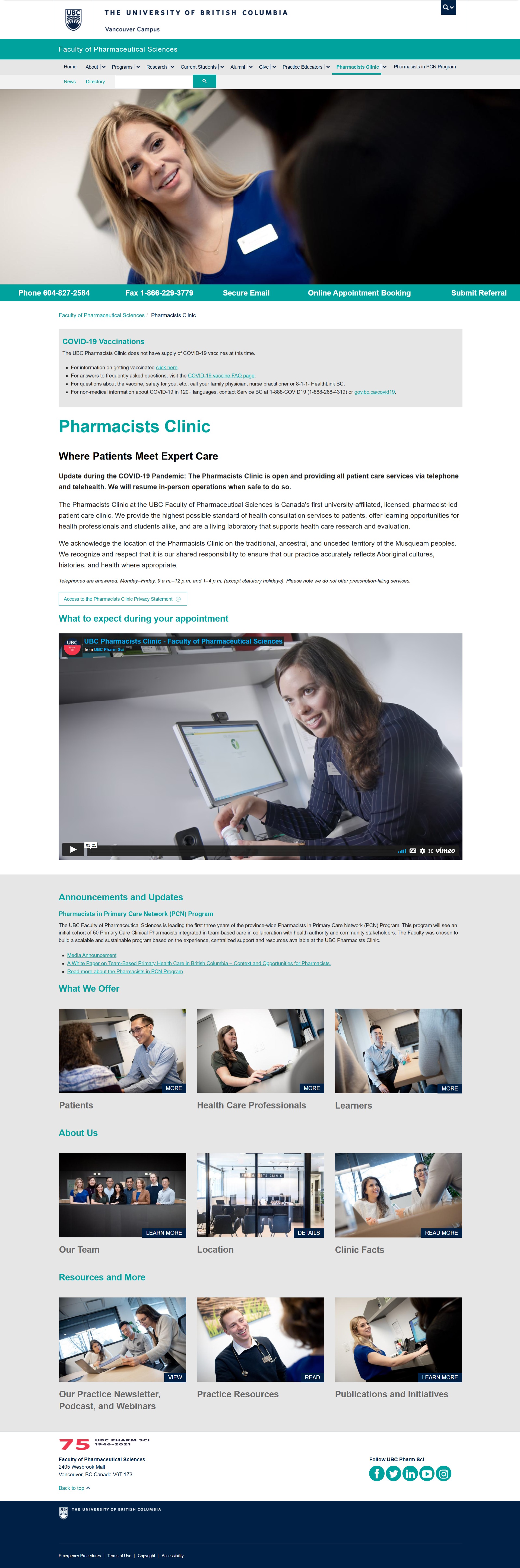 The UBC Pharmacists Clinic is a university-affiliated, pharmacist-led